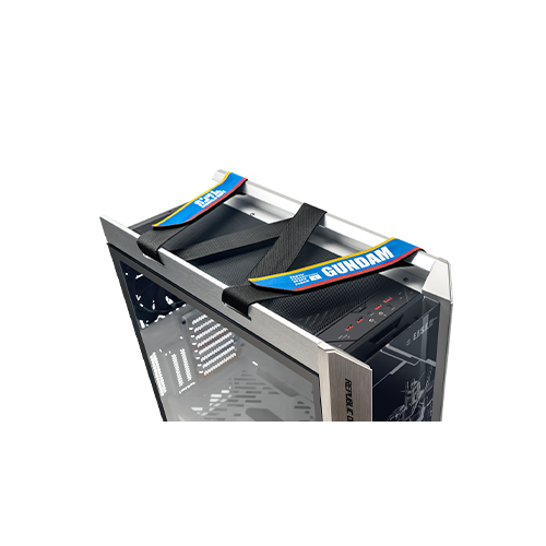 The integrated RGB LEDs in the front panel of ROG Strix Helios GUNDAM EDITION can be customized using a dedicated control button or with Aura Sync software. Light up the GUNDAM mech figure on the panel with a choice of millions of colors and a wide range of effects!